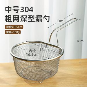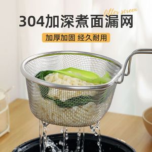 304不锈钢漏网厨房捞面条家用深型焯水过滤网油炸长柄沥水篮