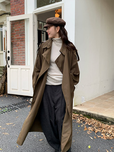 万为 简约松弛感外套女2025秋季新款可拆肩章蝙蝠袖长款风衣P3911
