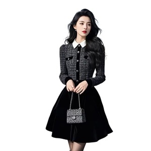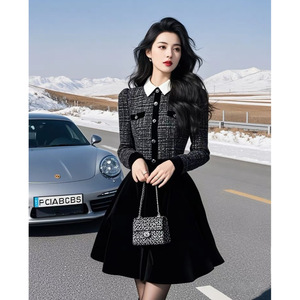 冷淡系别致裙子秋冬正式场合法式感气质黑色小香风连衣裙