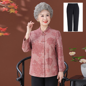 老人秋装衬衫女长袖大码中老年人妈妈春秋衬衣老太太衣服奶奶上衣
