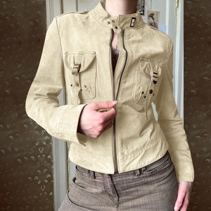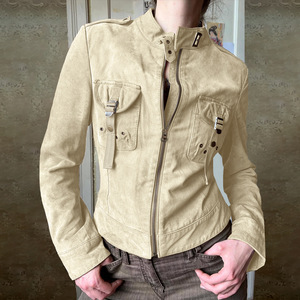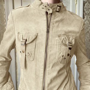 亚马逊美式复古风工装立领口袋牛仔夹克街头酷帅鸡眼拉链辣妹外套