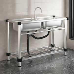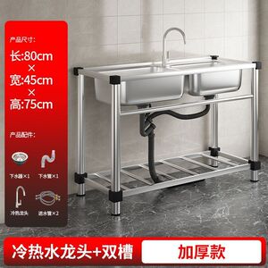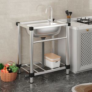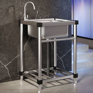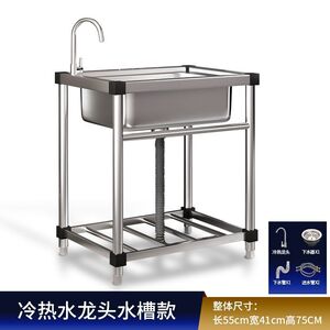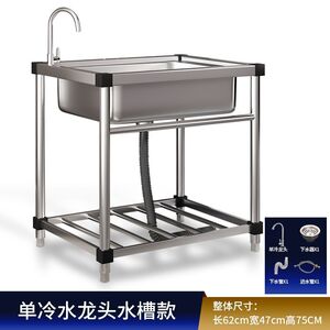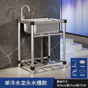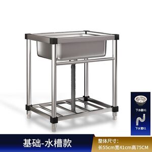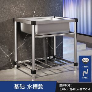 商用厨房洗菜盆304不锈钢洗手盆带支架一体洗碗池家用水槽大单槽