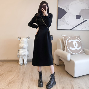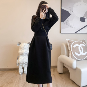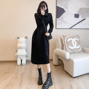 2025秋季新款女装赫本风黑色休闲polo连衣裙收腰气质高级感A字裙
