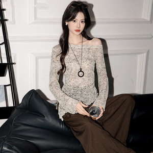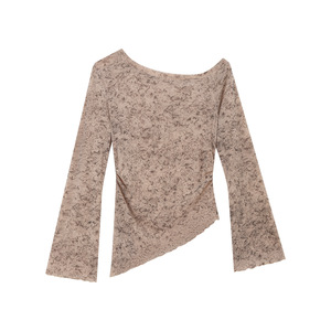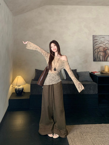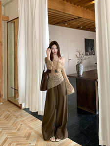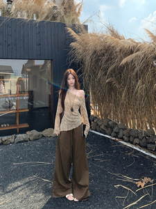 设计感晕染露肩长袖针织衫不规则上衣女秋季宽松休闲裤长裤两件套