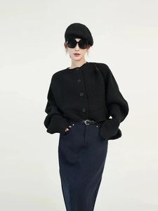 宽松坑条短款长袖针织衫女装秋季新款减龄宽松软糯温柔毛衣chic潮