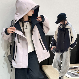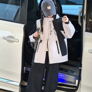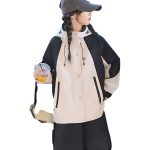 跨境女童冲锋衣外套2025新款儿童外穿初中生时髦秋装棒球连帽夹克