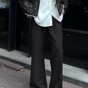 SAIW 美式高街 cleanfit 廓形西裤男直筒微喇vibe 黑色休闲长裤