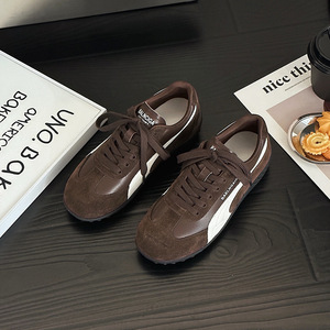 复古真皮休闲运动芭蕾德训鞋女2025秋新款轻便舒适软底百搭阿甘鞋