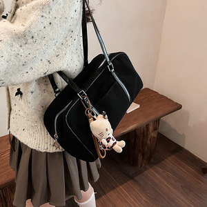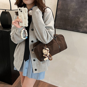 麂皮绒包包女大容量2025新款秋冬磨砂复古单肩腋下包高级感枕头包