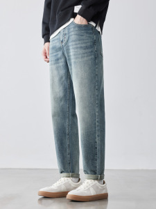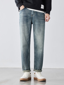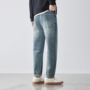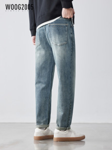 WOOG2005水洗弹力直筒牛仔裤男2025秋季新款微宽松百搭休闲长裤子