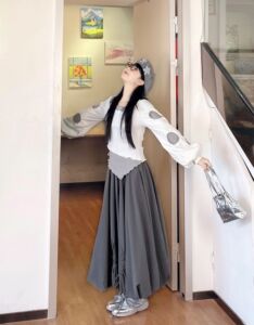 2025早秋穿搭一整套感小众不规则T恤上衣花苞半身裙子女超火套装