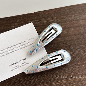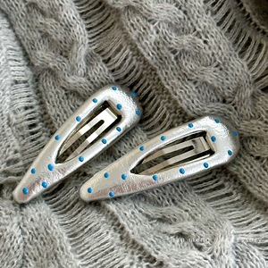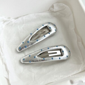 海盐蓝色小波点发夹韩国东大门老板娘同款银色刘海夹边夹BB夹对夹