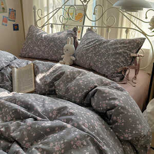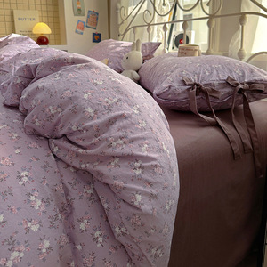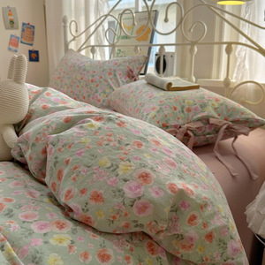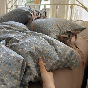 小清新印花蝴蝶结绑带款棉麻超柔四件套寝室床单被套三件套