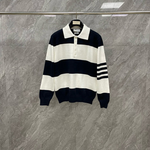 厂家直营TB秋季新款条纹撞色四杠翻领POLO针织衫休闲时尚百搭款潮