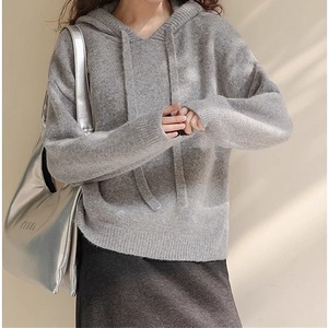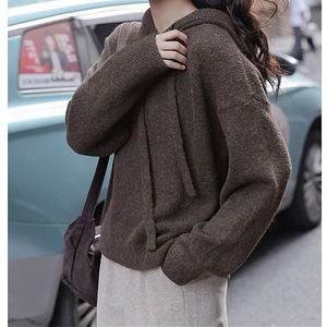 韩系慵懒风抽绳连帽毛衣女宽松秋冬洋气软糯港味上衣针织打底衫女