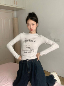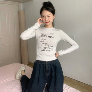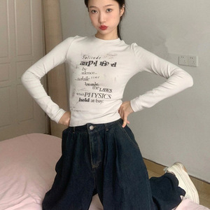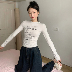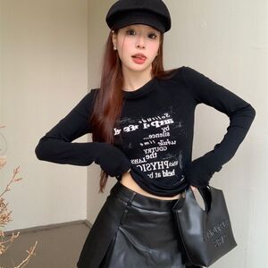美式复古黑色长袖t恤女2025春秋冬紧身甜辣妹内搭打底衫修身上衣