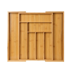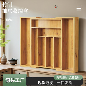 竹制伸缩抽屉收纳盒厨房刀具银器分格整理竹木盒文具可扩展储物盒