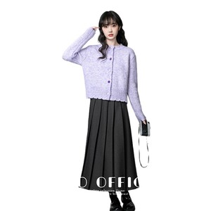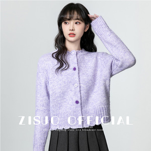 香芋紫圆领毛衣外套女2025春秋新款宽松软糯加厚针织开衫短款上衣