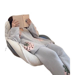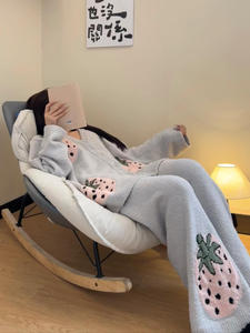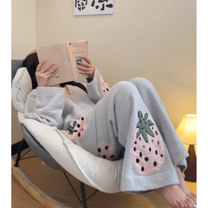 秋冬新款草莓印花半边绒睡衣女慵懒风氛围感加厚保暖家居服两件套