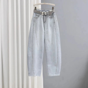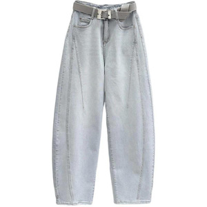 莫兰迪灰弯刀牛仔裤女2025年春秋季款高腰显瘦休闲今年流行老爹裤