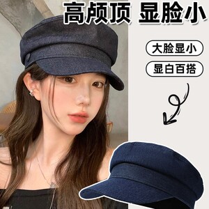 气质款深牛仔平顶八角帽子女夏复古百搭显脸小报童帽时尚画家帽潮