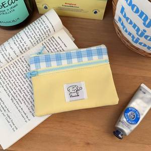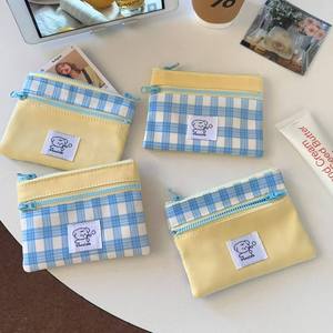 新款拼接双层拉链收纳包小清新奶黄格子口红耳机包便携手拿包卡包