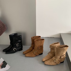 2025韩版新款小众设计百搭法式短靴小方头粗跟美拉德中筒靴女靴子