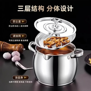 不锈钢猪油罐带滤网双耳家用带盖大容量油缸装储存罐油盆耐高温