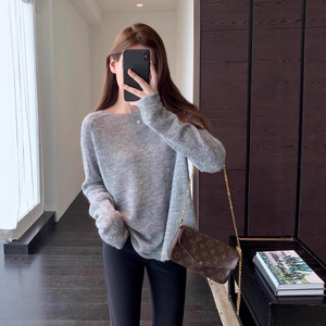 A138291温柔甜美 马海毛混纺薄款显瘦长袖针织衫上衣女毛衣秋新