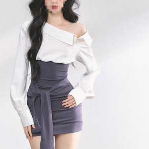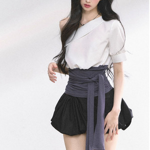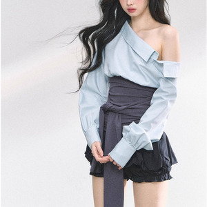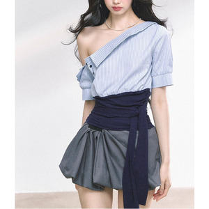 法式韩系氛围感斜肩辣妹T恤女夏收腰显瘦设计感高级通勤衬衫上衣