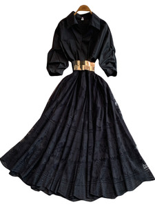 法式高级感气质V领七分袖连衣裙女绝美公主优雅蕾丝拼接大摆长裙
