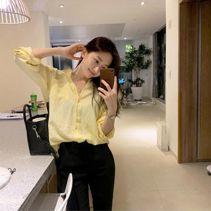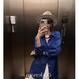 法式白色亚麻长袖衬衫女夏季薄款宽松老钱风棉麻衬衣外搭防晒上衣
