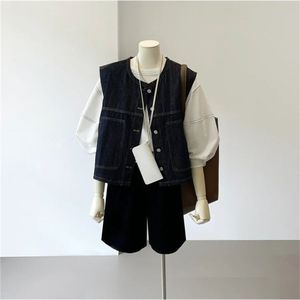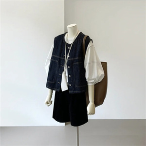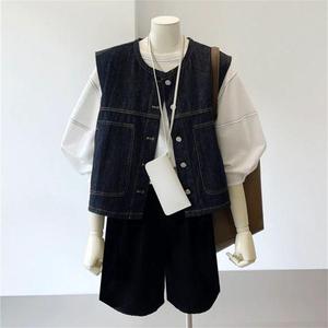 港味复古叠穿外搭显瘦牛仔马甲女春夏新款感时尚无袖坎肩外套