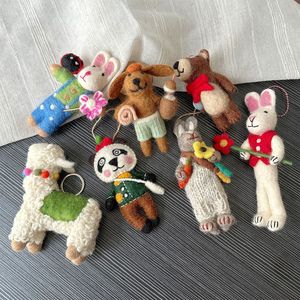尼泊尔手工羊毛毡包包挂件可爱卡通小狗钥匙扣小熊兔子玩偶挂饰