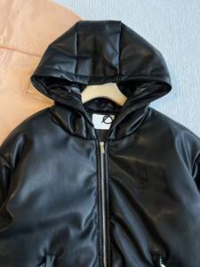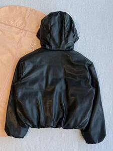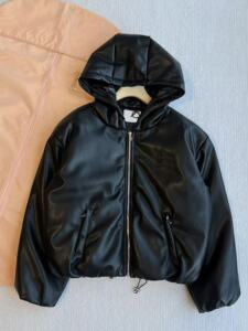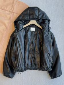南油女装M家25秋冬季新款字母贴布黑色抽绳连帽拉链休闲时尚外套