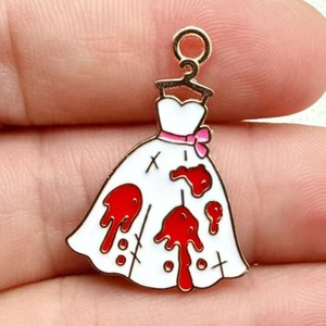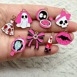 卡通通万圣节玫红女幽灵吊坠DIY合金滴油嘴唇口红蝴蝶结群子挂件