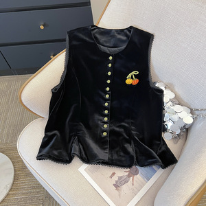 新款 新中式国风丝绒马甲女2025新款小南瓜复古时尚马夹上衣