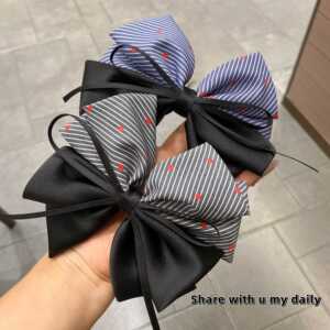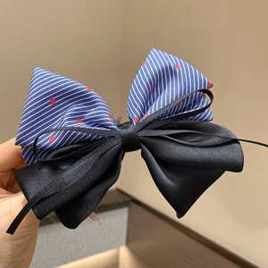 大蝴蝶结头饰后脑勺发夹条纹波点顶夹弹簧夹新款气质高端发卡发饰
