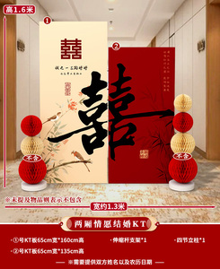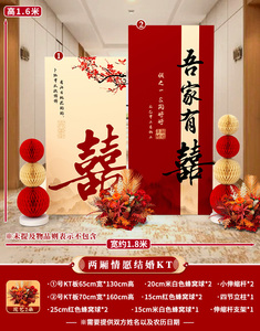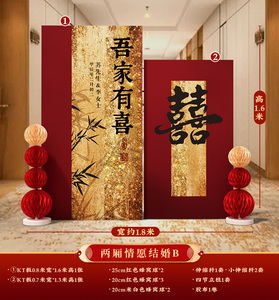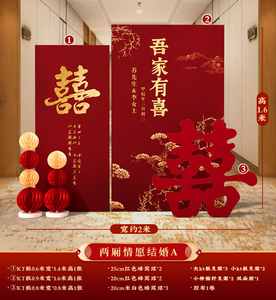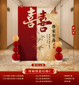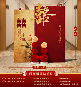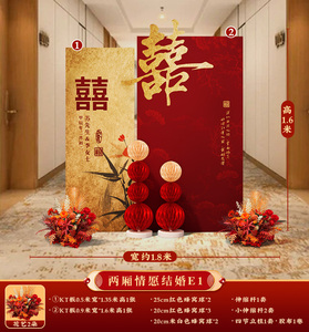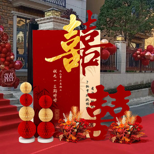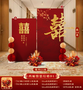 新中式订婚宴布置装饰全套仪式感婚房女方喜字迎宾牌立牌kt板