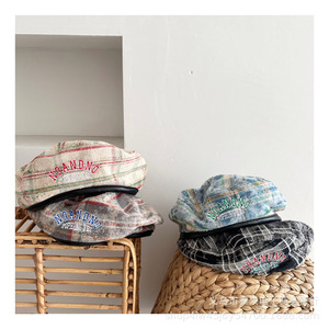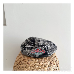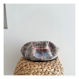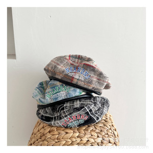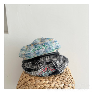 秋冬季儿童洋气英伦风复古pu皮包边韩版文艺刺绣画家帽儿童贝雷帽