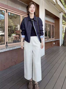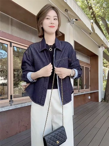 港风复古牛仔外套女秋季短款高品质拼接格纹翻领衬衫爆款洋气上衣