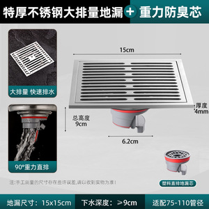 防臭地漏304不锈钢地漏加厚灰色地漏卫生间地漏淋浴间大排量地漏