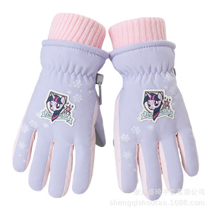 小马宝莉儿童滑雪手套加绒加厚防寒保暖户外防风防滑可爱宝宝小孩