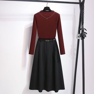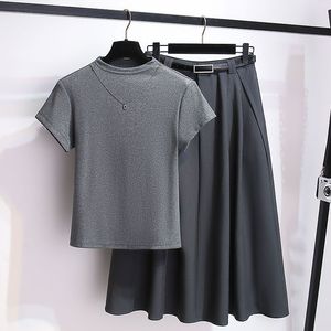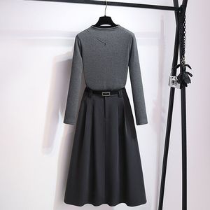 灰色小高领上衣加A字西装半身裙两件套女2025初春装新款显瘦穿搭