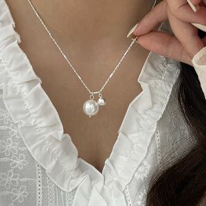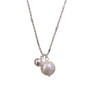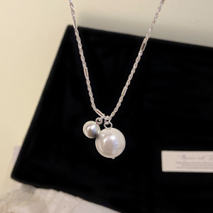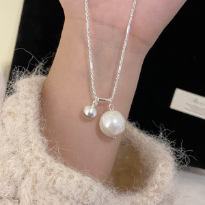 珍珠拉丝小银球吊坠项链女小众=高级感双珠简约百搭锁骨链项饰