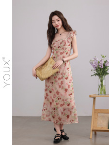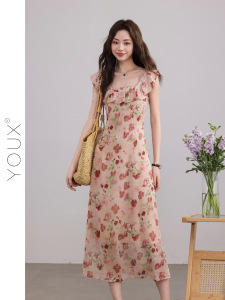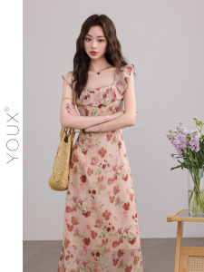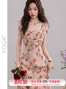 又巷【花季应约】碎花连衣裙女2025夏季新款气质小飞袖方领a字裙