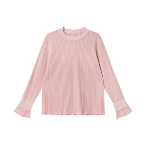 你好卡农 甜美肌理木纹边小立领打底衫女春季2025新款宽松长袖t恤