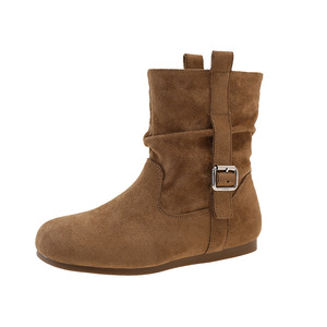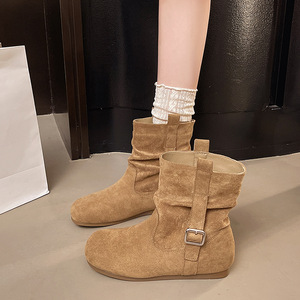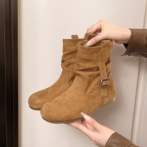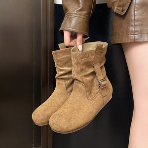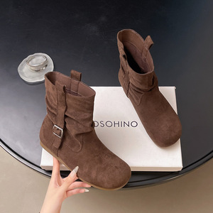韩系复古短靴子女2025年新款秋季西部牛仔马丁靴配裙子勃肯堆堆靴