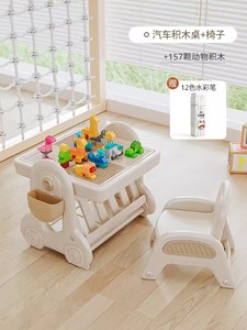 汽车积木桌+椅子+157颗动物积木【送画笔】