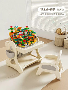 环球积木桌+椅子+400颗粒大积木房子滑道积木【送画笔】